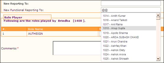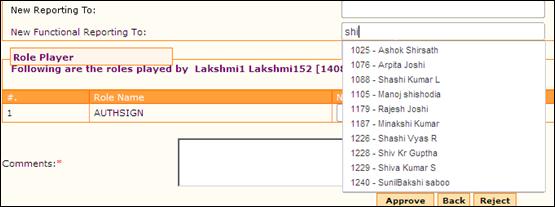 Similarly, if the employee is a role player, then, the roles handled by him/her will be shown in this form. The approver can reassign the roles to a new Role Player.