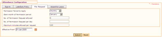 This is to specify the maximum minutes allowed per permission request. For example, to specify only 2 hours is allowed in a permission request, then enter as 120 minutes. |