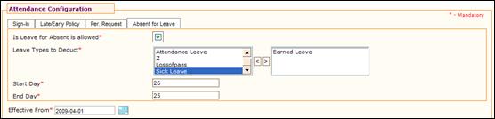 Note: If the Start Day is greater than the End Day, then it means that the calculation is done from the previous month to the current month. For example, if start day is given as 26 and end day is given as 25. It means that the absent for leave will be considered from 26th of previous month to 25th of current month. |